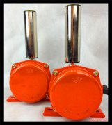 HQFY-96P-FYL本安型隔爆跑偏開關當輸送帶運行中出現跑偏時,輸送帶觸碰開關立輥并使立輥偏轉, 兩級跑偏開關工作原理 兩級跑偏開關安裝在皮帶輸送機兩側、距離皮帶機首尾端部1~3m的地方。當皮帶跑偏時,皮帶邊緣壓向檔輪,迫使檔輪偏轉,使限位開關動作。為減少檔輪與皮帶的摩擦,檔輪的本體是由軸承制作的。 當發生輕微跑偏事故時(15°),兩級跑偏開關的第一組觸點動作,發出事故預告信號。 當發生嚴重跑偏事故時(30°),兩級跑偏開關的第二組觸點動作,可使輸送機自動停車。,當立輥偏轉角度達到1級開關角度時,開關發出信號。當輸送帶跑偏嚴重,達到2級開關角度時,開關發出停機信號,實現輸送帶跑偏故障自動停機。當跑偏故障排除后,膠帶機正常運轉時,開關立輥可自動復位,回到初始狀態。